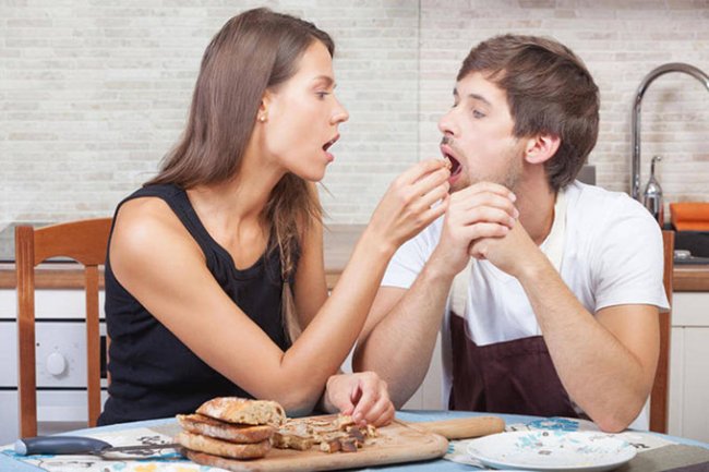 Игровой поцелуй. Партнер хватает губами губы партнерши и вводит язык в рот, после чего целует кончик носа и подбородок.