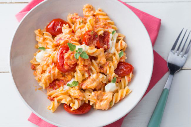 Эта паста имеет пикантный вкус за счет сочетания томатов и сладковатого сыра рикотта.